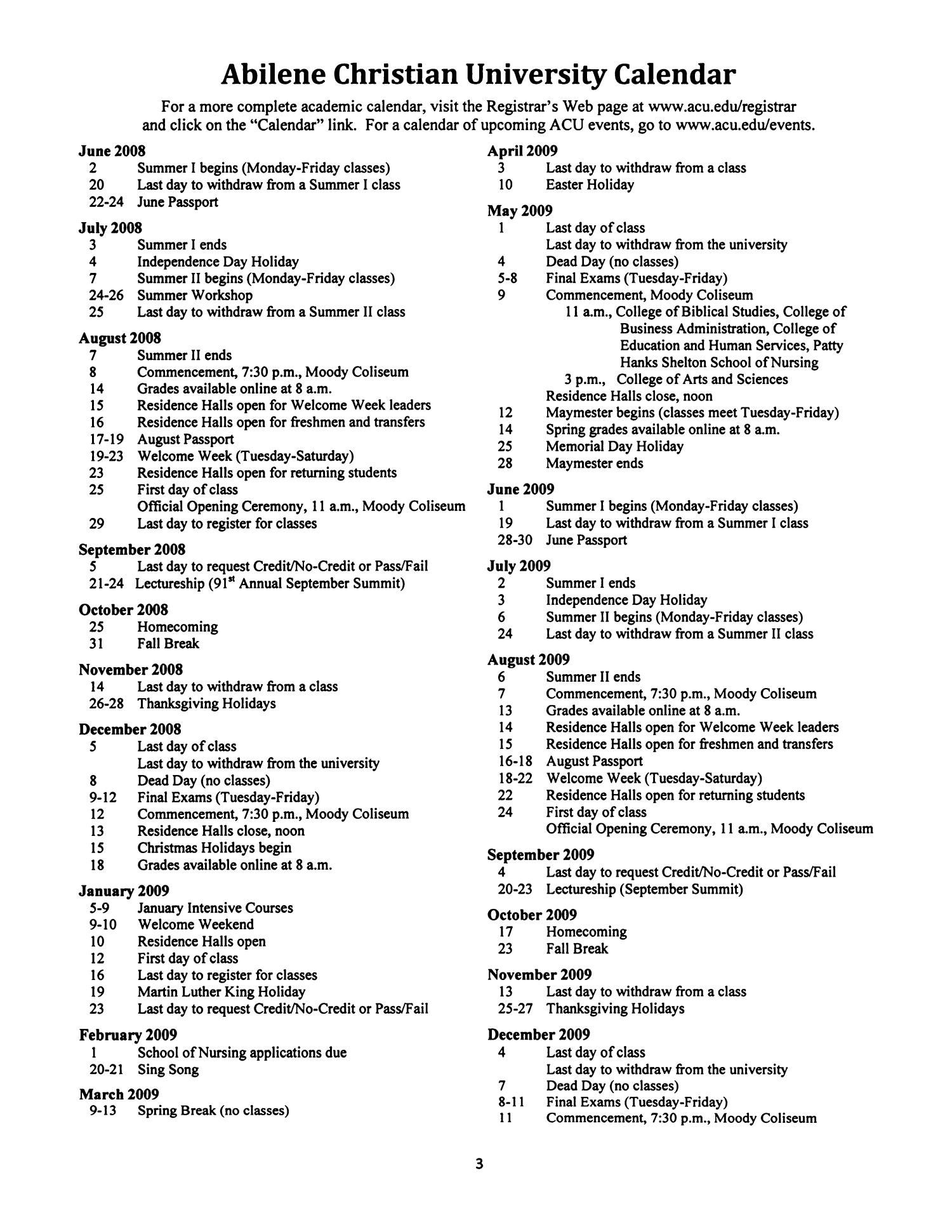 Catalog of Abilene Christian University, 20082009 Page 3 The