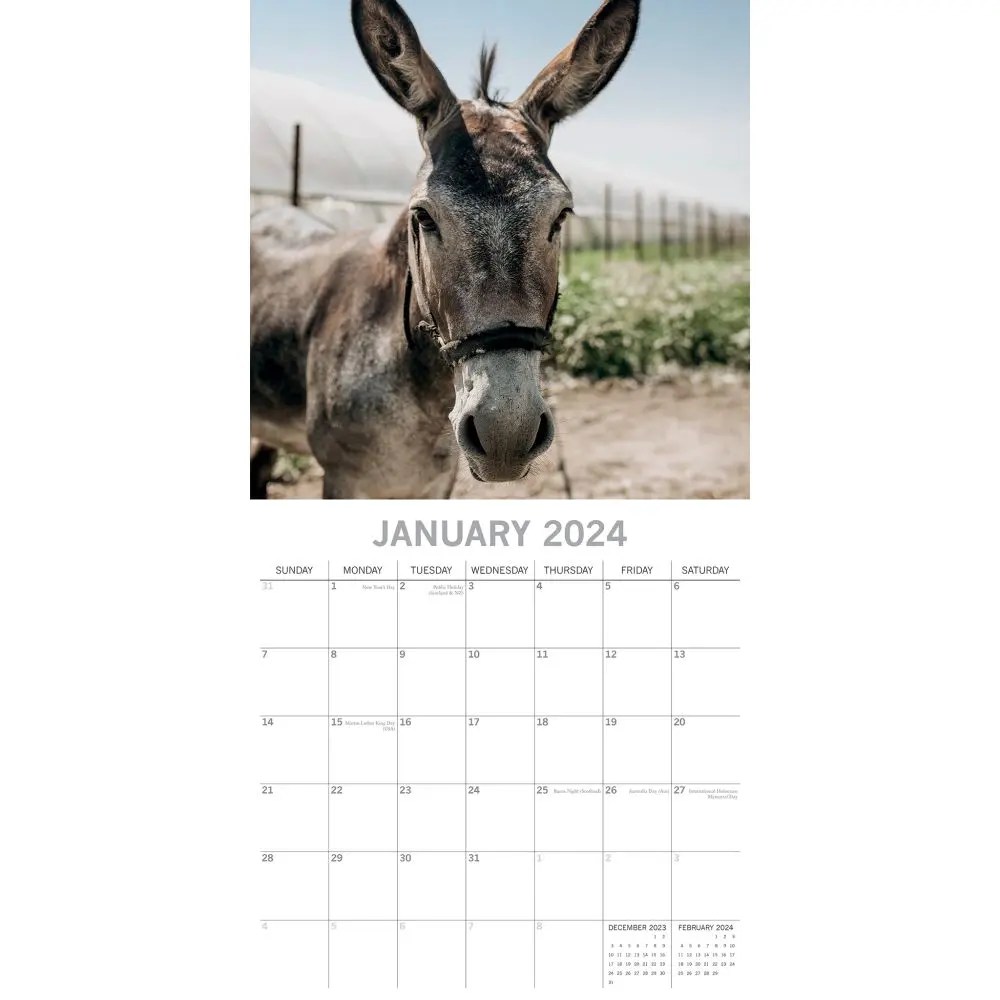 Three years calendar, 30 images of donkeys, jan 2024 to jun 2026, 17 x 22 opened, premium. Web 2024 donkey sanctuary wall calendar. There isn't much that is cuter than a funny donkey face on this calendar. The donkeys calendar 2024 showcases captivating images featuring these charming and. Web enjoy our animal wall calendar 2024.