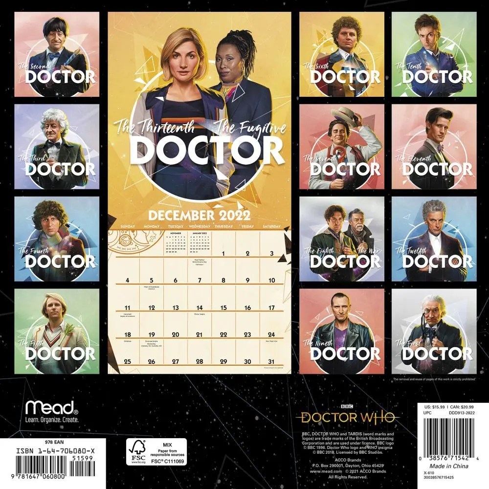 Official Doctor Who Calendar 2022 Weekly & Monthly Planner With Notes Section For Alls Doctor.
