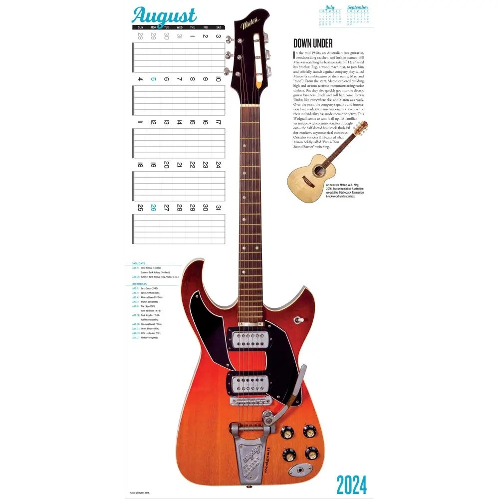 New jersey (nj) 155 route 22, springfield township, nj, 07081. Web vintage guitars | 2024 12 x 24 inch monthly square wall calendar | foil stamped cover | browntrout | instrument. Free delivery tue, aug 22 on $25 of items shipped by. Web prs 2024 private stock guitar calendar brand new $29.95 free shipping free shipping from columbia city, in recently.