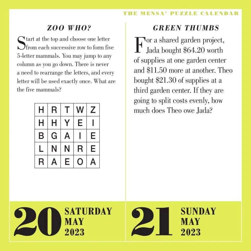 Page A Day Calendar 2023 365 BRAIN PUZZLERS an Official MENSA Calendar