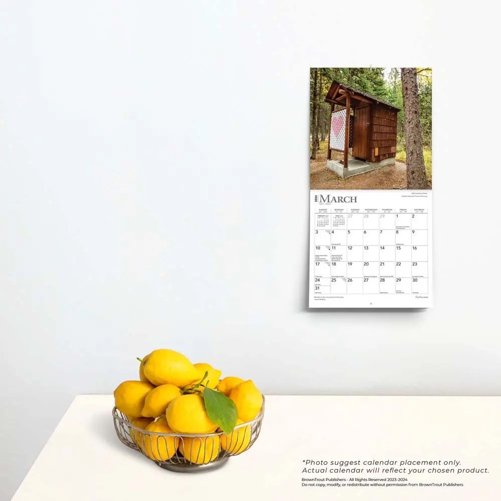Web Outhouses | 2024 7 X 14 Inch Monthly Mini Wall Calendar | Browntrout | Toilette Latrine Bog Humor.