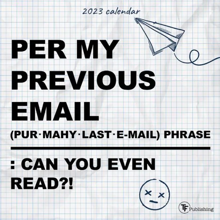 Office passive aggression at its finest! Our hilarious 2023 12 month per my last email. In preparing the calendar for an academic. Comment day of the week date; Shop our huge selection at.
