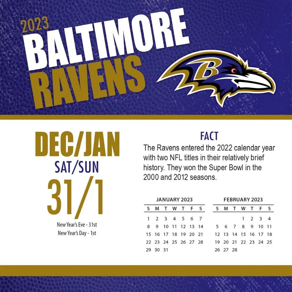 Web check out our 2023 raven wall calendar selection for the very best in unique or custom, handmade pieces from our shops. Yearly printable calendars for 2023 — ready to download. The schedule includes opponents, date, time, and tv network. Web pick your own year, start and end dates, and calendar length. Web baltimore ravens 2023 12 x 12 team.