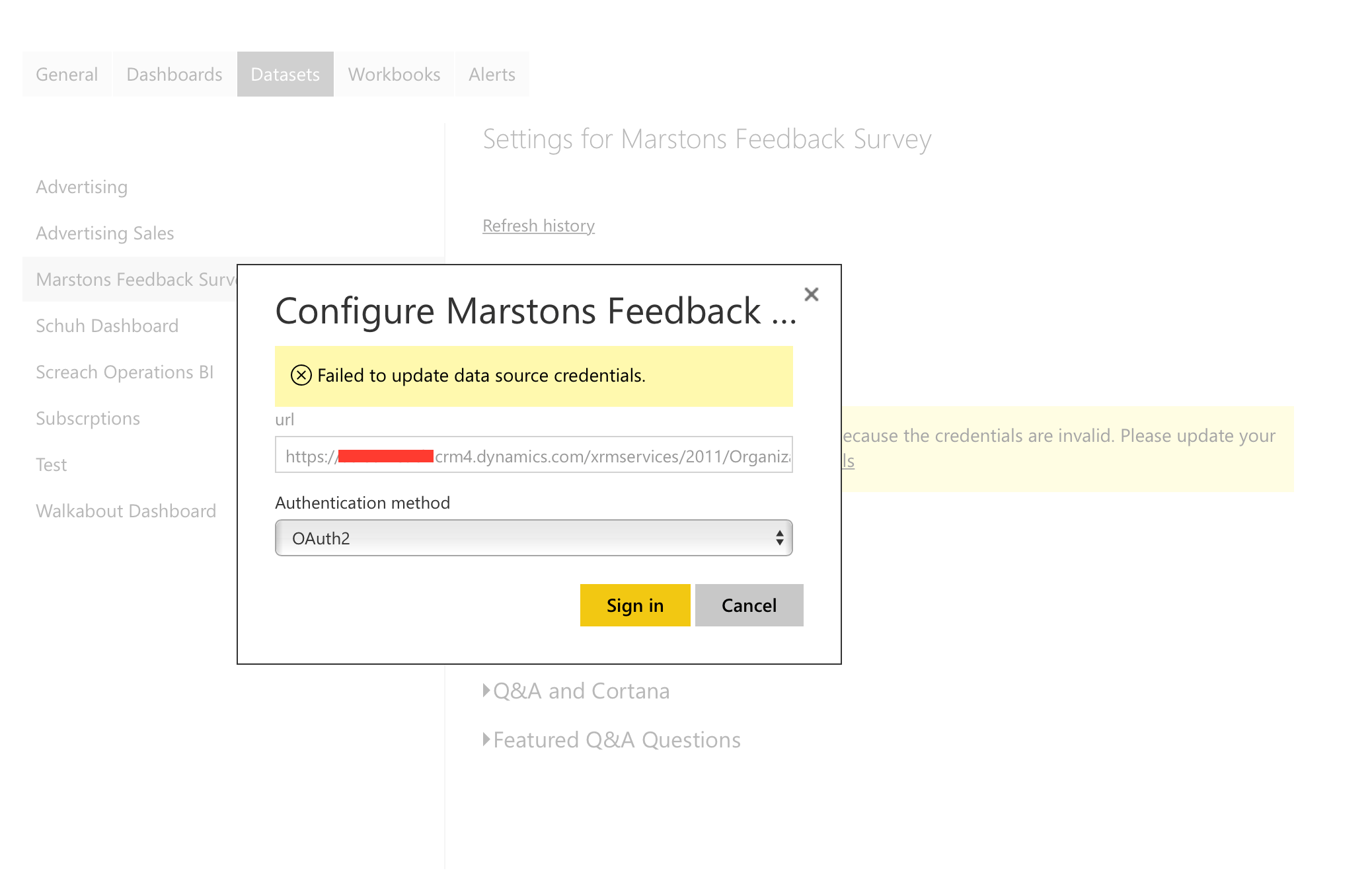 Invalid Credentials on Scheduled Refresh Page 3 Microsoft Power BI