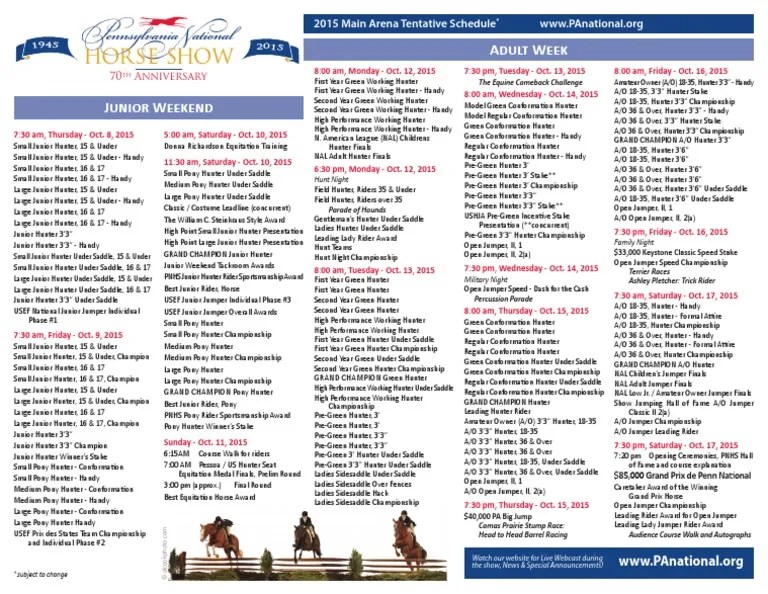 2015 Pennsylvania National Horse Show Schedule Show Jumping Horses