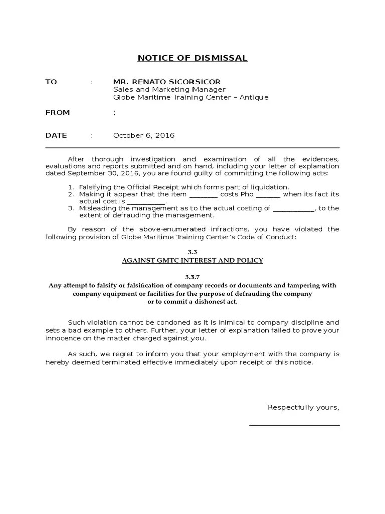 FREE 5+ Sample Notice of Dismissal Forms in MS Word PDF