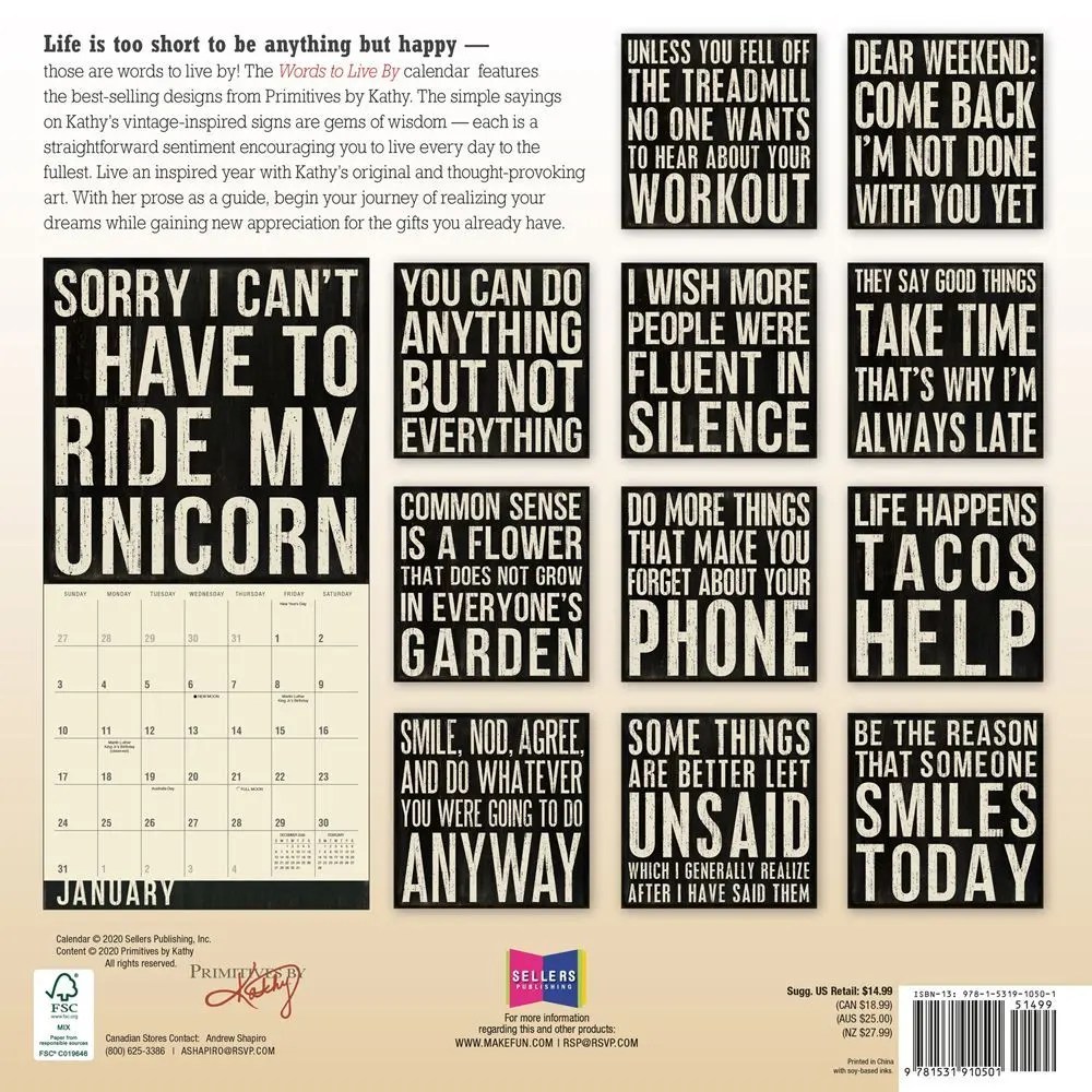 Words to Live By 2020 Mini Wall Calendar Wall calendar, Calendar